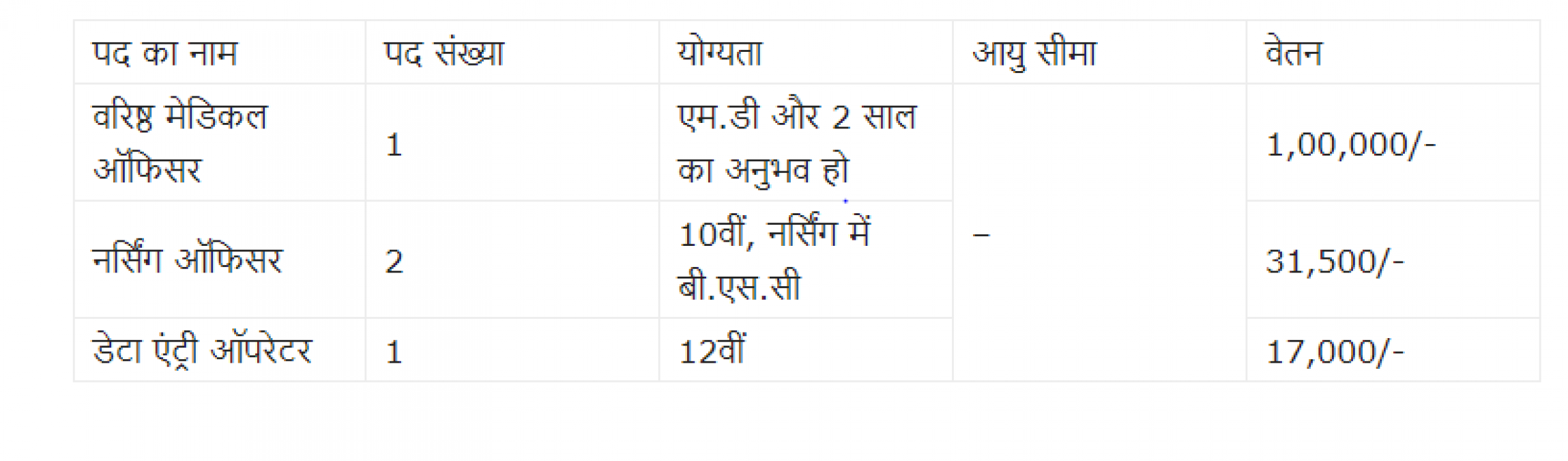 पद का नाम- वरिष्ठ मेडिकल ऑफिसर, नर्सिंग ऑफिसर, डेटा एंट्री ऑपरेटर